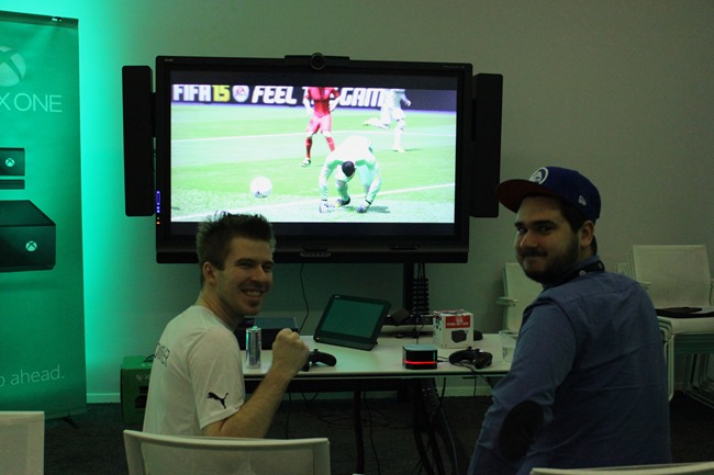 Die Vorraussetzungen waren jedoch nicht die Besten, denn gespielt wurde Fifa 15 auf der Xbox One, wo ich bisher keine zehn Spiele bestritten hatte. Die zwei Aufwärmspiele zeigten auch nichts gutes, denn sowohl gegen einen Redakteur von RedBull-Media, wie auch den Redakteur von oe4.com gab es zwei harte Klatschen. Und dann kam es auch schon zur Auslosung, die wohl auch besser verlaufen hätte können. Mit David Bitzan vom Volume gab es einen Spieler, dessen Können ich nicht einschätzen konnte, den ich jedoch als Schwächsten der Gruppe einstufte. Mit dem ehemaligen Pokalsieger Johannes Karner hatten wir gleich einen der stärksten Spieler in der Gruppe. Als letzter Spieler in unserer Gruppe wurde noch Wolfgang Bogner vom Weekend Verlag hineingelost, der letztes Jahr gemeinsam mit mir in Köln war.