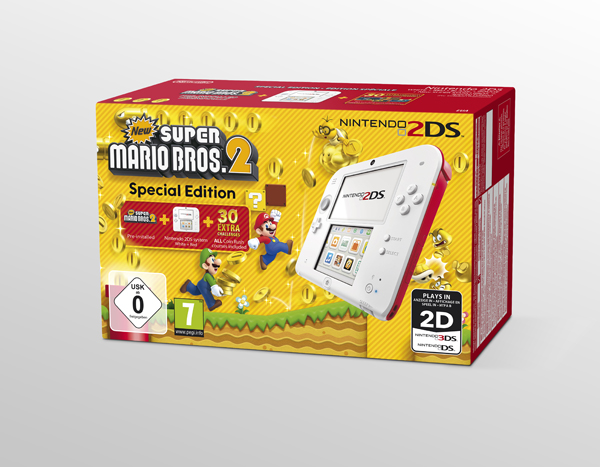 Für alle Videospiel-Fans, denen der Sommer gar nicht warm genug werden kann, bringt Nintendo am 4. Juli ein Hardware-Paket mit einem heißen Jump & Run heraus: Die New Super Mario Bros. 2 Special Edition besteht aus der mobilen Konsole Nintendo 2DS in Weiß-Rot und dem Spiel New Super Mario Bros. 2, das auf einer 4GB-Speicherkarte vorinstalliert ist. Obendrein sind in dem Paket alle Inhalte des Münzrausch-Modus enthalten, die nach dem Verkaufsstart des Spiels im August 2012 zusätzlich erschienen sind. Das heißt: Auf der Jagd nach Gold warten auf die Nintendo-Freunde 80 Parcours voller verborgener Schätze - und noch einmal 30 Spielebenen extra.