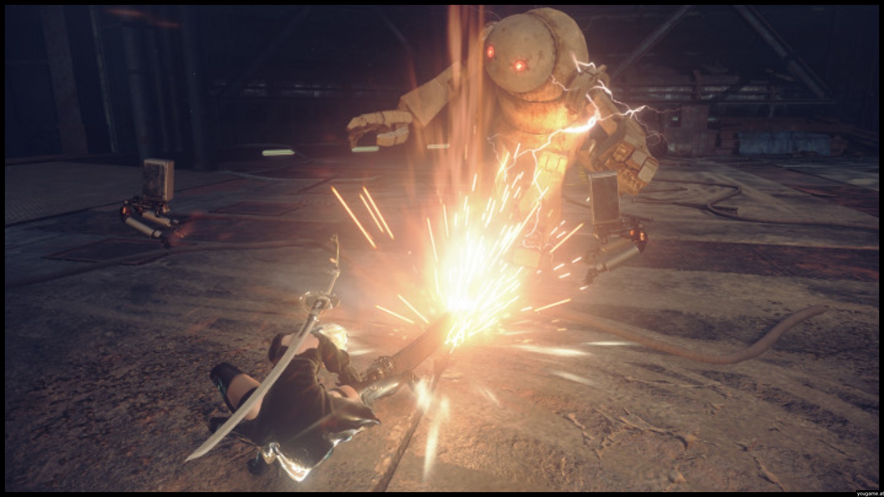 Zusätzlich wurde eine Auswahl an Screenshots und Artworks präsentiert. Zuschauer konnten einen ersten Blick auf das reichhaltige und wunderbar vielfältige Grafikerlebnis werfen, das NieR: Automata bietet. 2B, ein ganz neuer Android-Charakter, geschaffen von Akihiko Yoshida (Final Fantalsy XIV / Bravely Default), wurde ebenfalls ausführlich präsentiert, nachdem dieser zuvor auf der E3 2015 im allerersten Ankündigungstrailer zu sehen war.